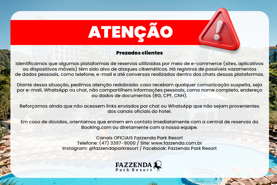 Ao inserir suas informações, você consentirá em receber, por e-mail, informações sobre as ofertas e atualizações do Fazzenda Park Resort. Para cancelar o recebimento use o link de cancelamento. Consulte a nossa Política de Privacidade para obter detalhes.