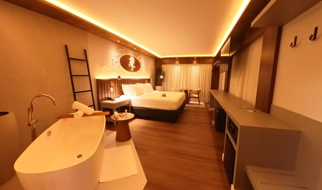 A acomodação dos sonhos para recém-casados. Localizada no último andar e com banheira de hidromassagem exclusiva para momentos inesquecíveis.