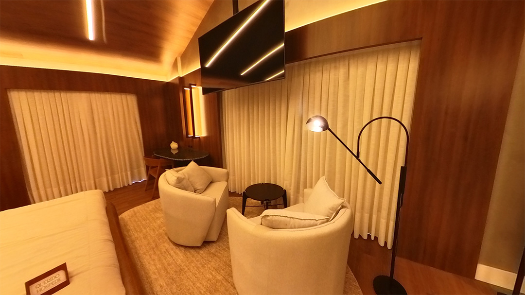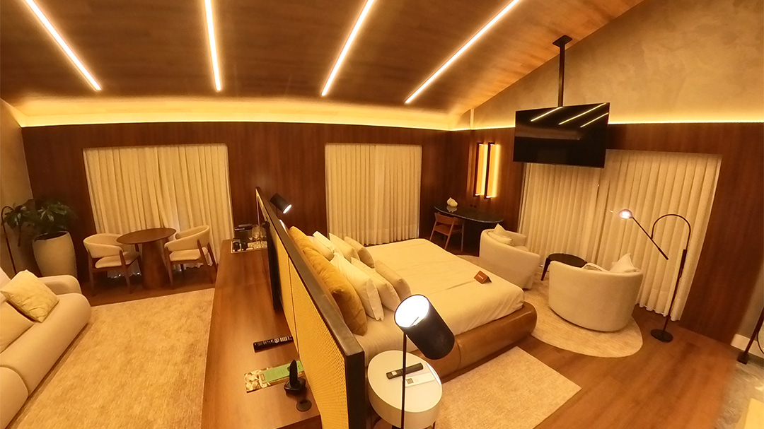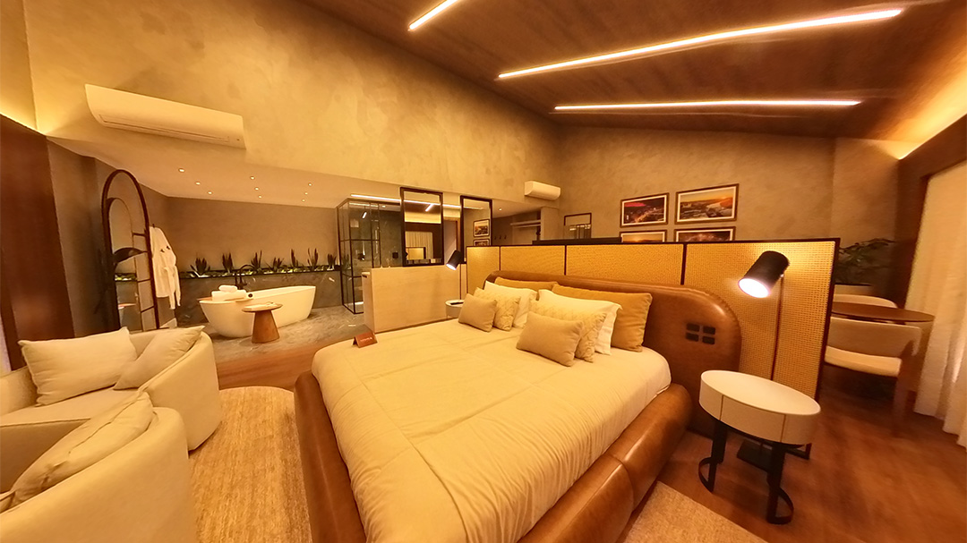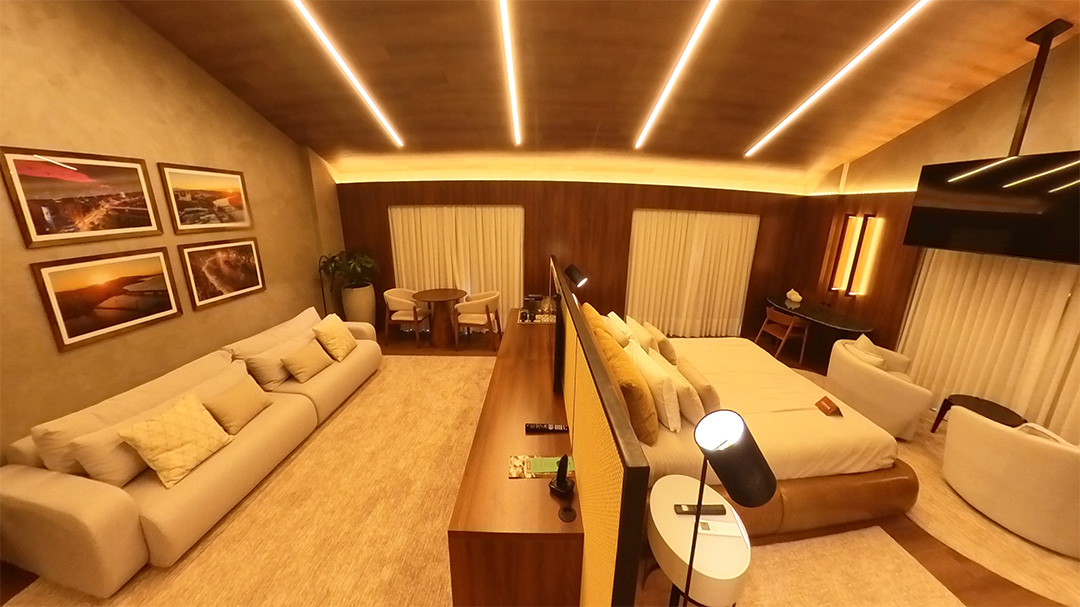 Suíte Presidencial do Fazzenda Park Resort é um refúgio exclusivo que combina sofisticação, conforto e uma vista de tirar o fôlego para a exuberante área de lazer do resort. Amplamente planejada para proporcionar uma experiência memorável, esta acomodação destaca-se por seu design elegante e detalhes cuidadosamente selecionados.